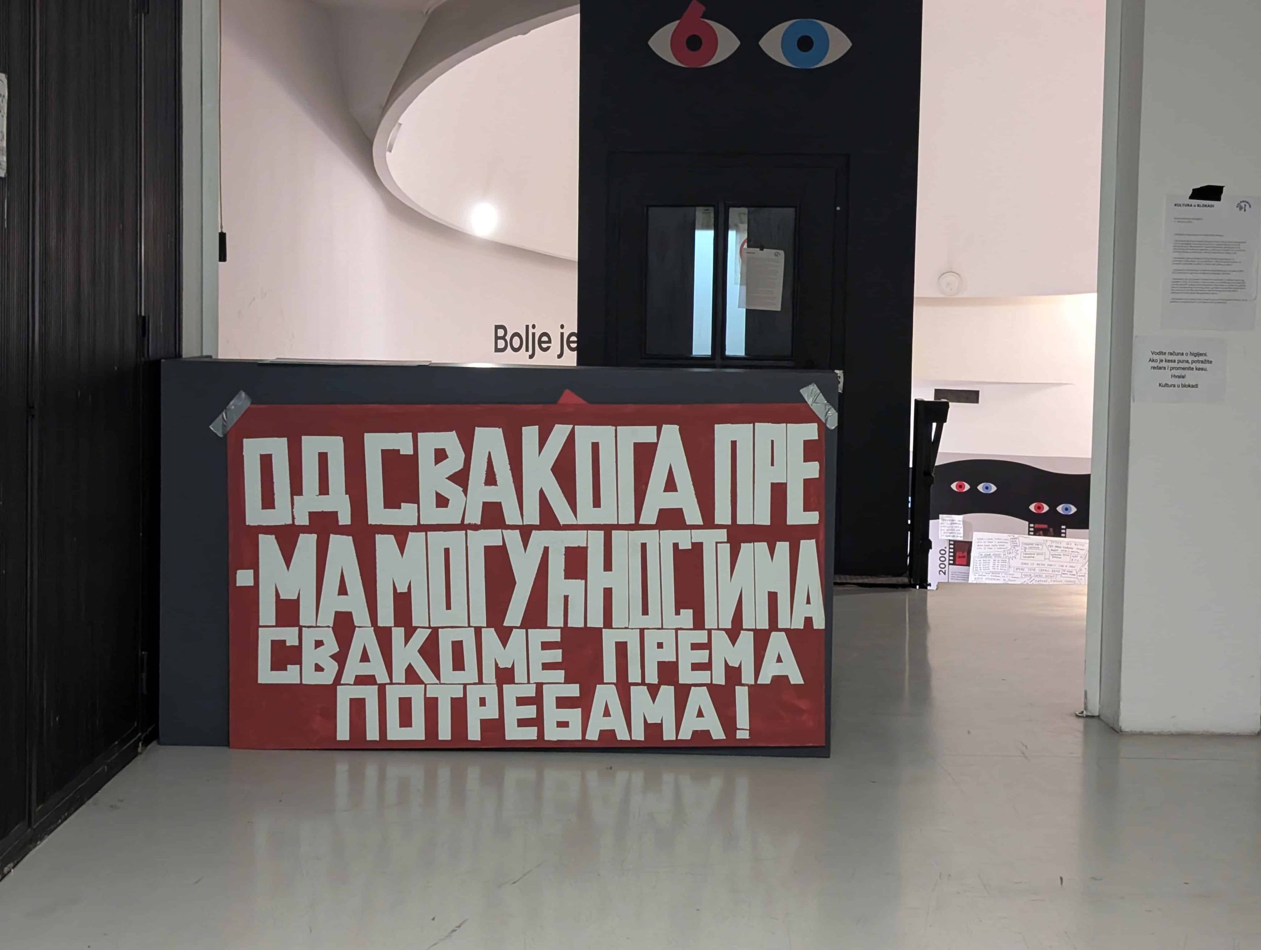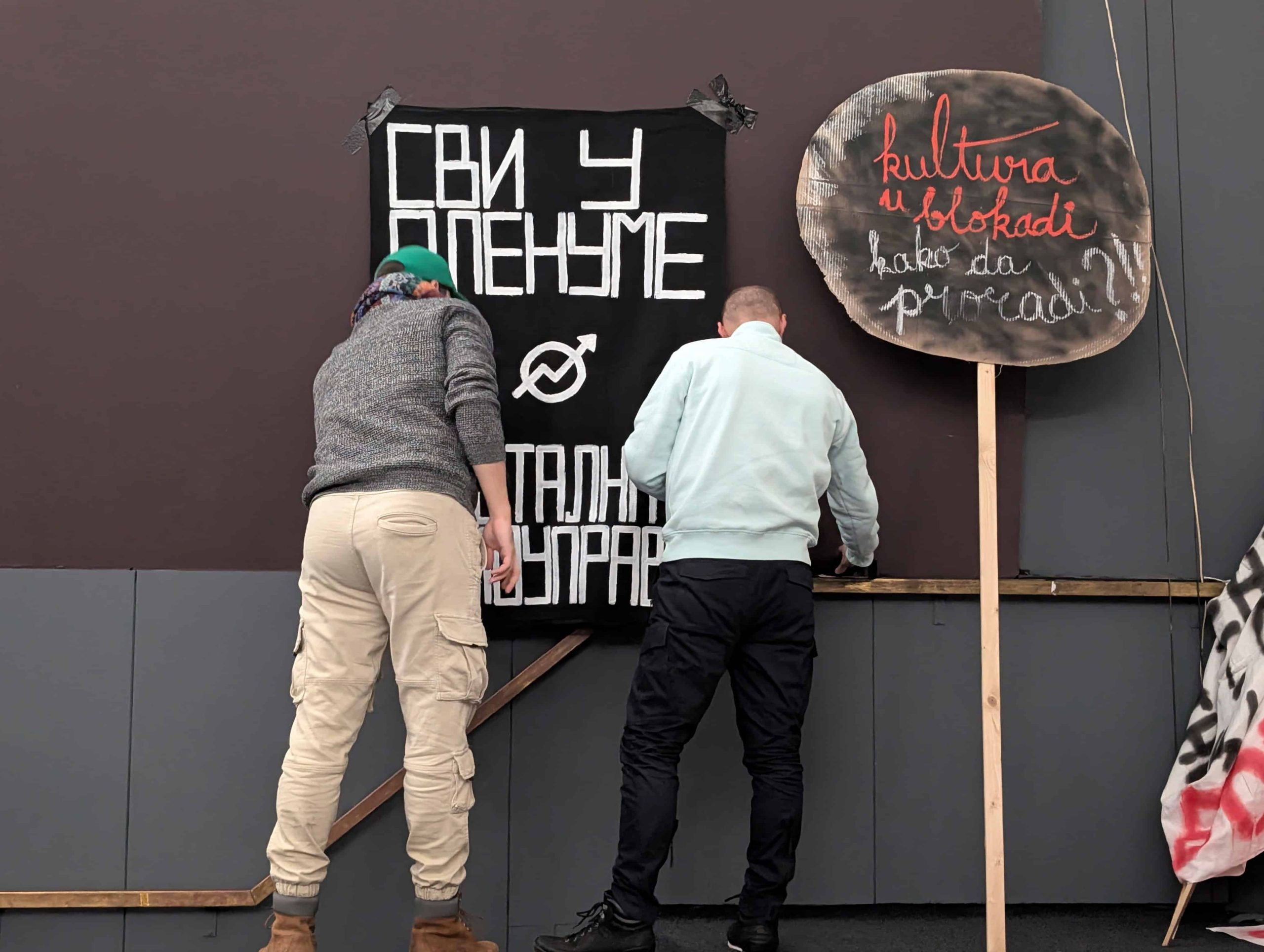 Kultura u blokadi je neformalna inicijativa koja funkcioniše na principima direktne demokratije i plenuma, otvorena za sve radnike u kulturi, samostalne umetnike, članove umetničkih udruženja, zaposlene u kulturnim centrima ili institucijama.